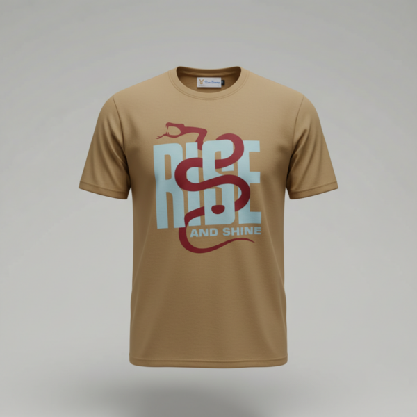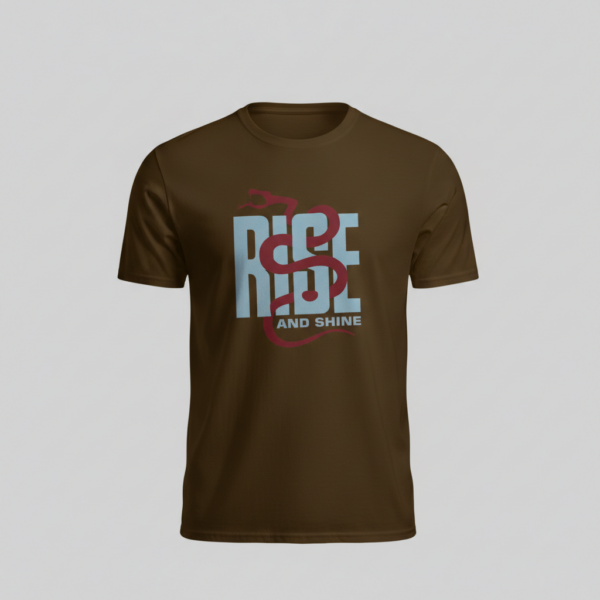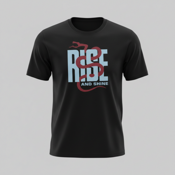 A minimal streetwear t-shirt featuring a bold “Rise & Shine” typography with a symbolic snake graphic. Designed for everyday comfort, this premium graphic t-shirt blends motivation, modern design, and effortless urban style.