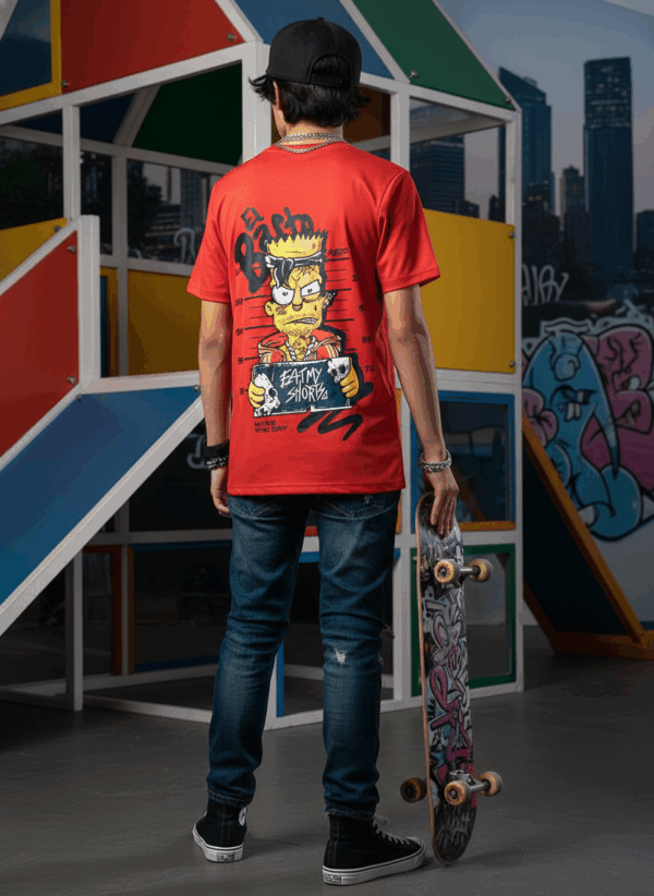 Bring bold street energy to your style with this urban-inspired mugshot graphic tee. Featuring a graffiti-style cartoon character, vibrant red color, and rebellious “Eat My Storyz” artwork, this shirt is perfect for skaters and anyone who loves edgy, expressive fashion.